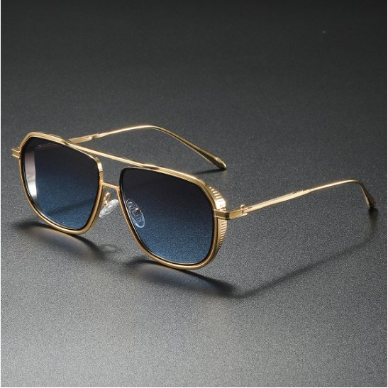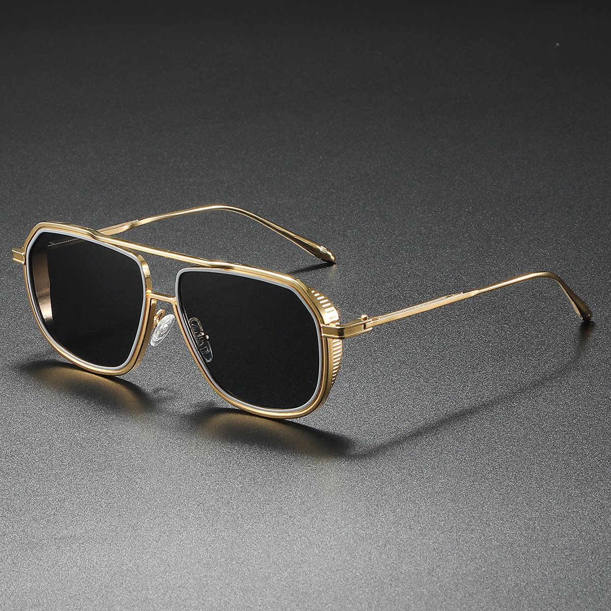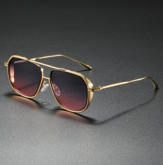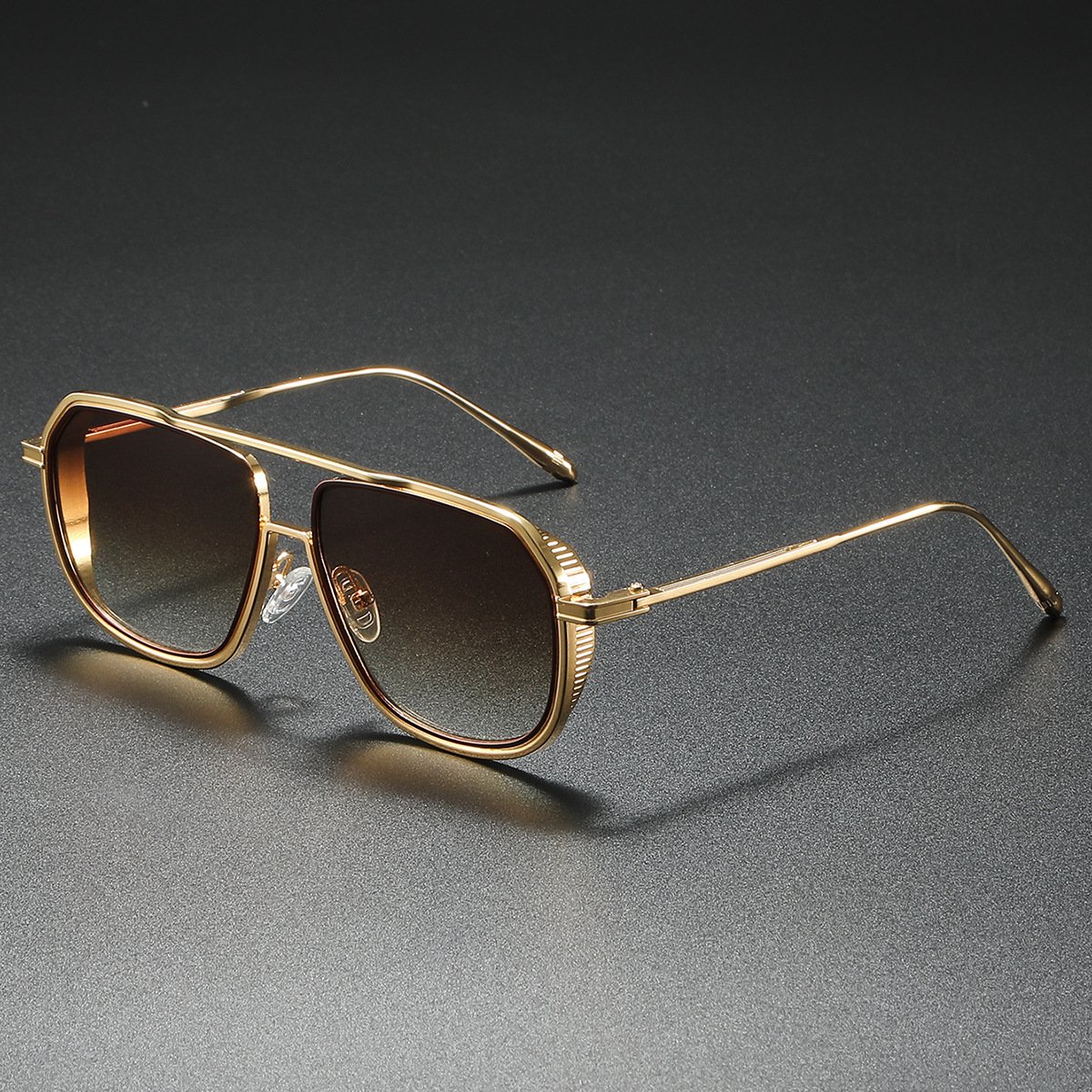 LUMINA ÉLITE Collection Rectangular Metal Sunglasses – Double Bridge with Gradient & Solid Lenses